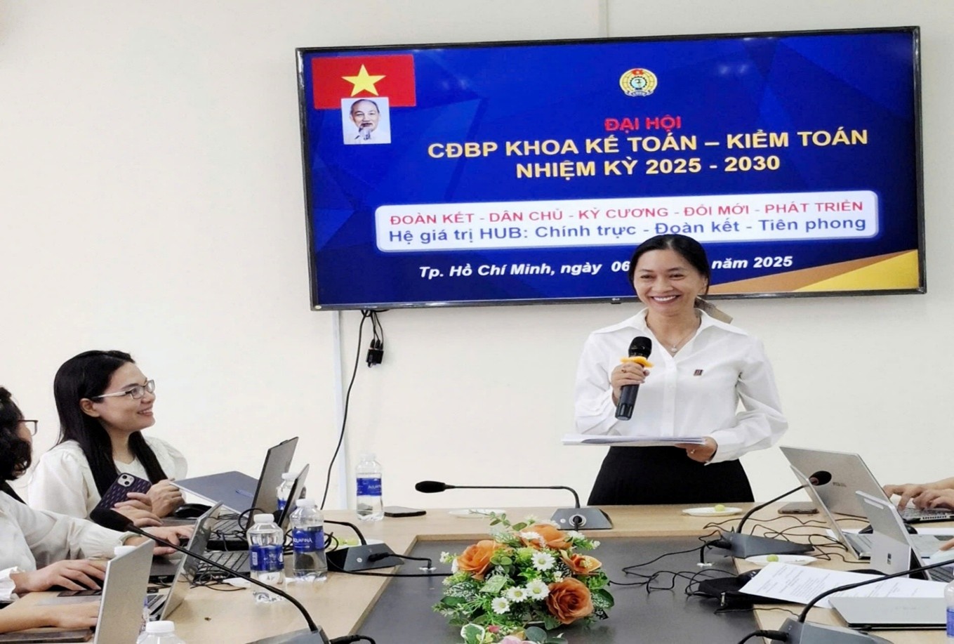 Sáng ngày 06/11/2025, tại Trường Đại học Ngân hàng TP. Hồ Chí Minh, Công đoàn bộ phận (CĐBP) Khoa Kế toán – Kiểm toán đã long trọng tổ chức Đại hội Công đoàn nhiệm kỳ 2025–2030. Đại hội nhằm đánh giá kết quả hoạt động trong nhiệm kỳ 2023–2028, đề ra phương hướng, nhiệm vụ cho nhiệm kỳ mới và bầu Ban Chấp hành Công đoàn bộ phận Khoa Kế toán – Kiểm toán nhiệm kỳ 2025–2030.